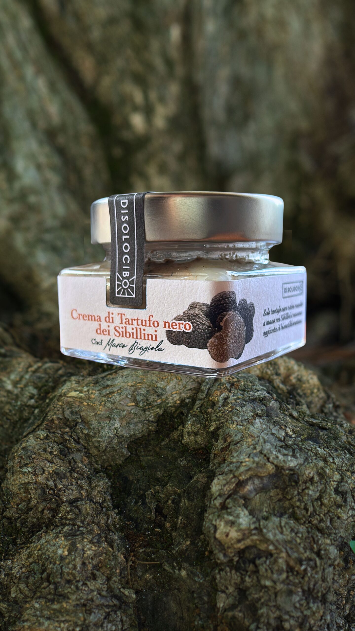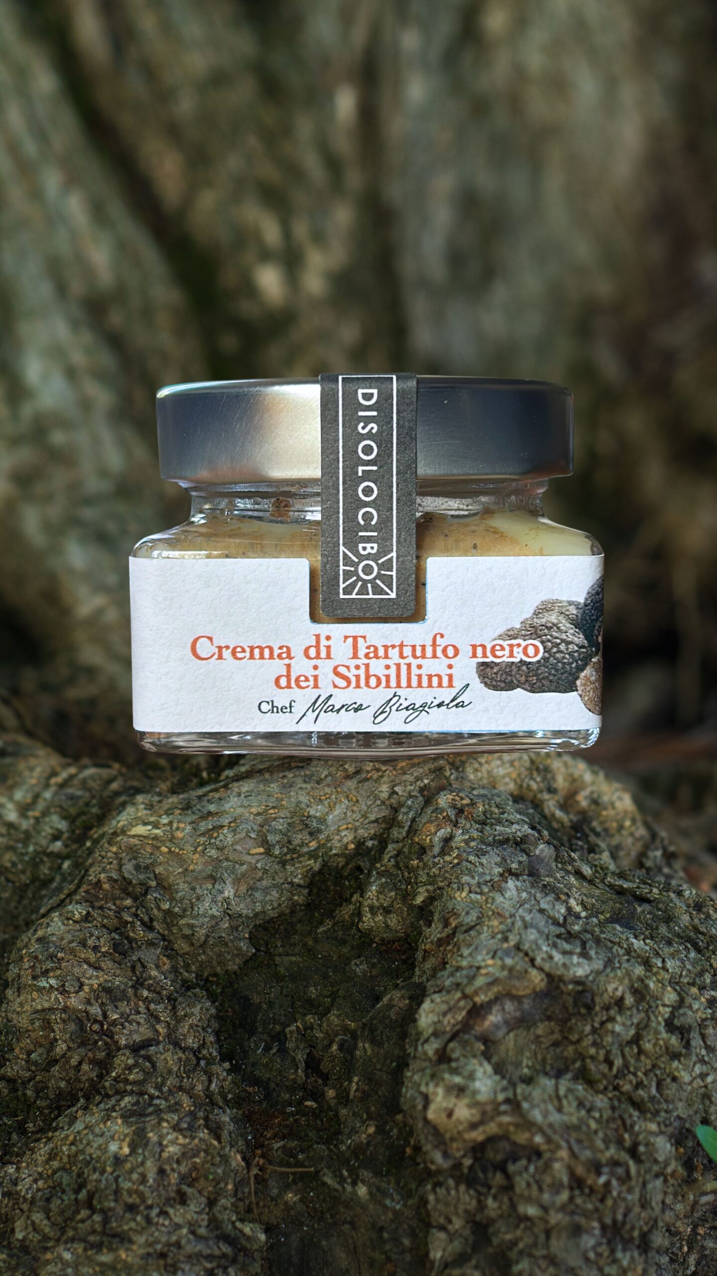 Crema dal gusto intenso e vellutato, realizzata con tartufo nero dei Monti Sibillini raccolto a mano. Lavorata artigianalmente senza aggiunta di aromi, è ideale per arricchire primi piatti e antipasti.